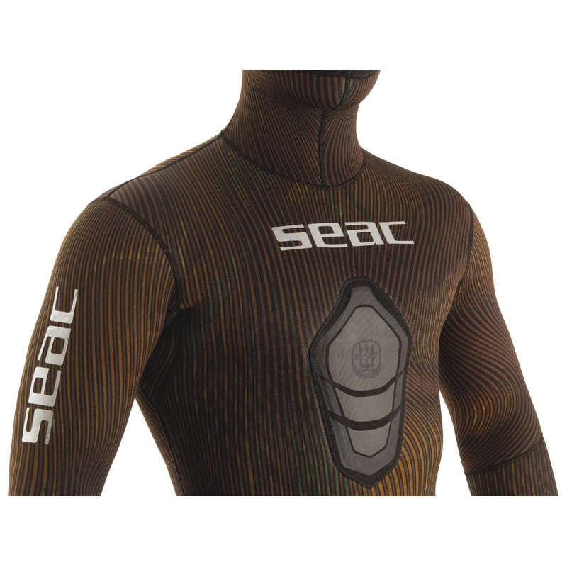 SEAC Alga je dvodelna neoprenska obleka, zasnovana za apneo in podvodni ribolov, izdelana iz mehkega neoprena debeline 5 mm, ki je lepljen in šivan z metodo blind stitching za vrhunsko vodoodpornost in trpežnost.