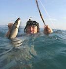 Ma, bio je to sukob civilizacija. On u podvodnom odijelu, jedna puška u ruci, druga zakačena za nogu, ali za pojasom nema ribe. Čovjek se onako pod morem počeo križati kad me je ugledao samo u kupaćim gaćicama, s afrofrizurom te lukom i strijelom, a za pojasom nekoliko kilograma ribe.
